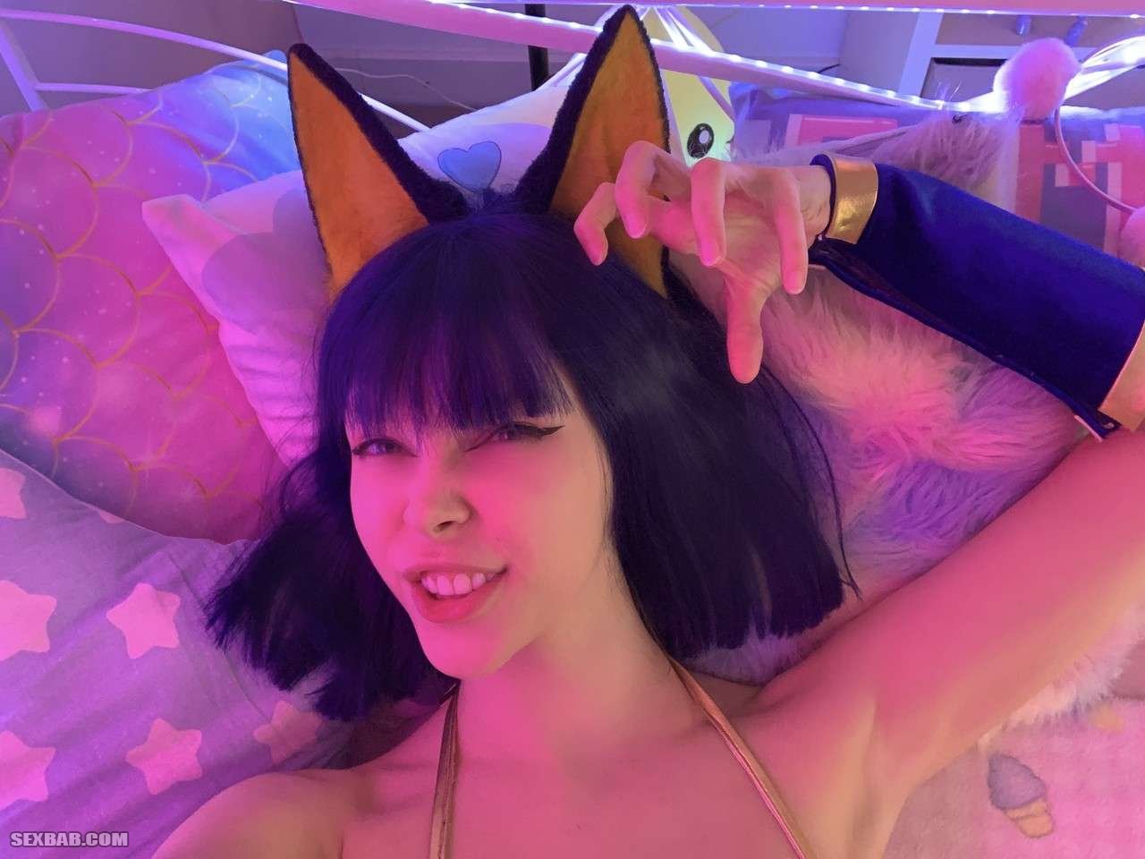 Голая милашка (LittleKitty69) с ушками на голове делает селфи в страстных позах (20 фото)