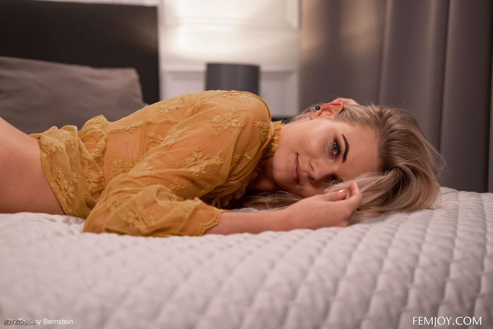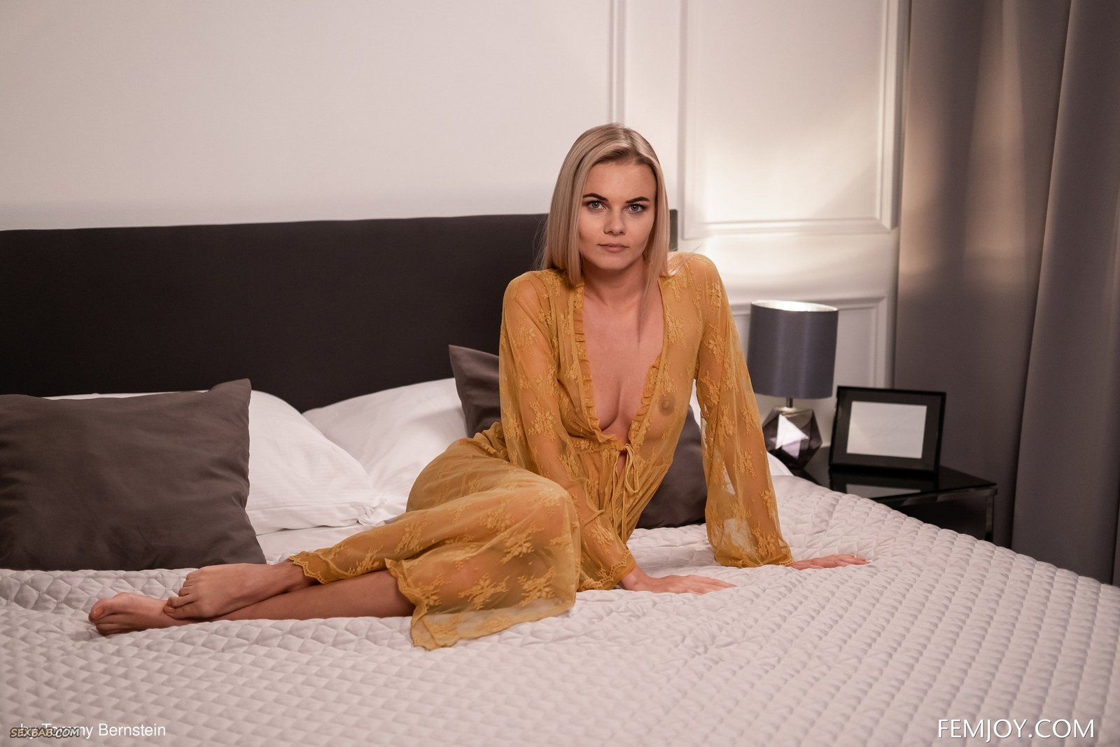 Описание: Эротично извиваясь всем телом на кровати, соблазнительная дамочка медленно снимает с себя кружевной халатик и с удовольствием оголяет перед камерой свое стройное подтянутое тело. Затем горячая телочка с упругими сиськами и задницей развратно выпячивает крупным планом свою бритую промежность и тщательно втирает скользкое масло в нежную чувствительную кожу.