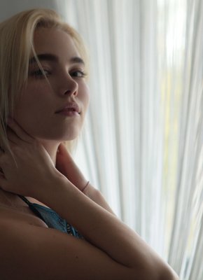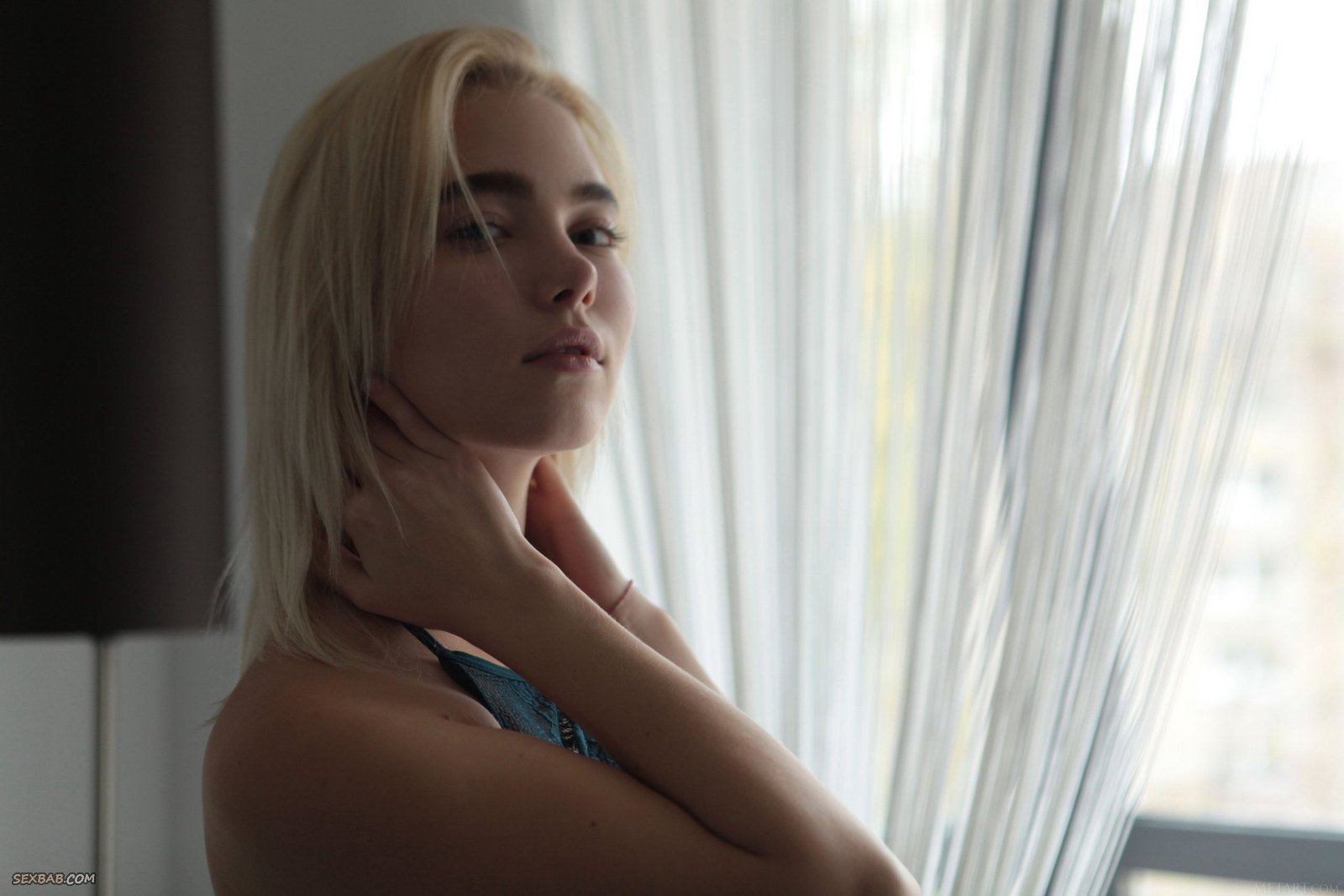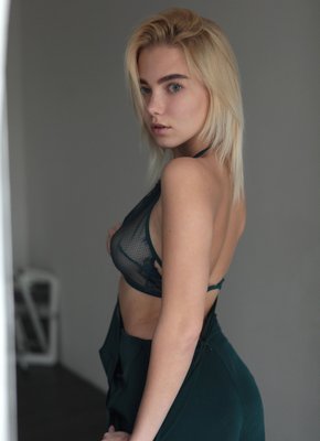 Описание: Эротично позируя перед камерой и постепенно снимая с себя одежду с кружевным нижним бельем, аппетитная похотливая детка с упругой грудью и попкой бесстыже демонстрирует свои прелести у большого окна. Затем обнаженная блондинка с сексуальным телом возбуждающе извивается в разных позах и в полумраке засвечивает свою голую бритую писечку.