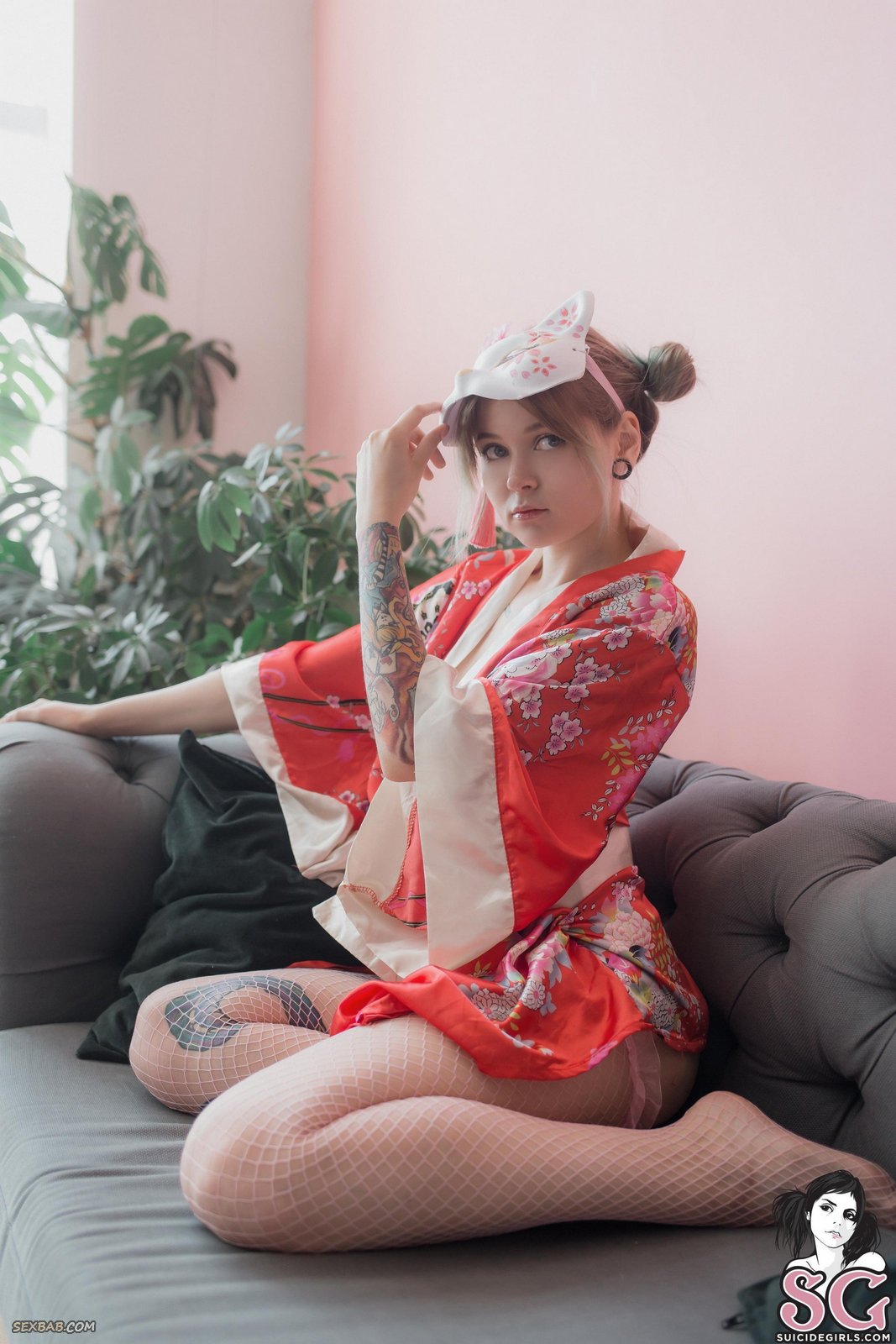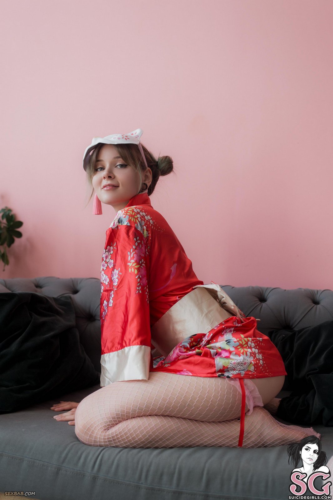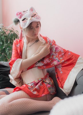Милашка в кимоно оголила аппетитную попку
