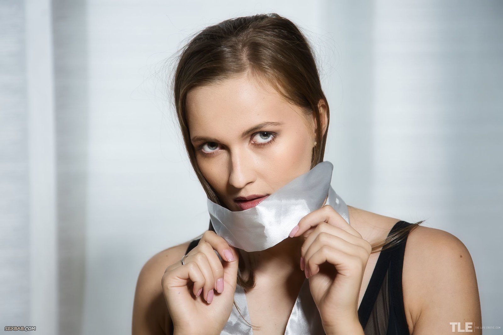 Описание: Похотливая возбужденная извращенка с завязанными глазами эротично позирует перед камерой в чулках и развратном наряде и на показ играется перед камерой с длинным дилдо, страстно облизывая его своим шаловливым язычком, а затем трахая им свою бритую влажную пизду.