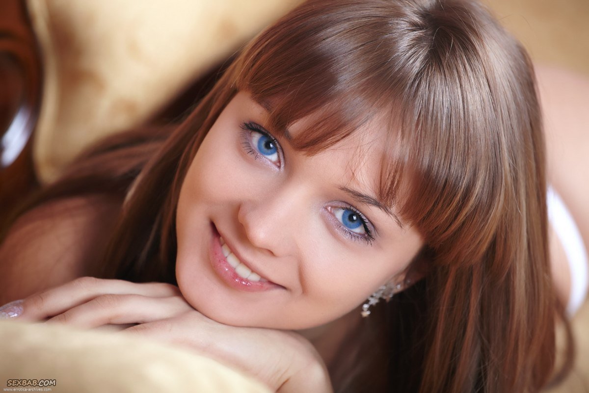 Описание: Необыкновенно красивая, голубоглазая красавица сняла белое платье на диванчике и голая позирует перед фотокамерой. Стройная девушка обладает стройной фигуркой и невероятно смазливым личиком и потрясающими глазками. Помимо всего прочего, нам повезёт рассмотреть бритую киску милашки и её узкую попку.