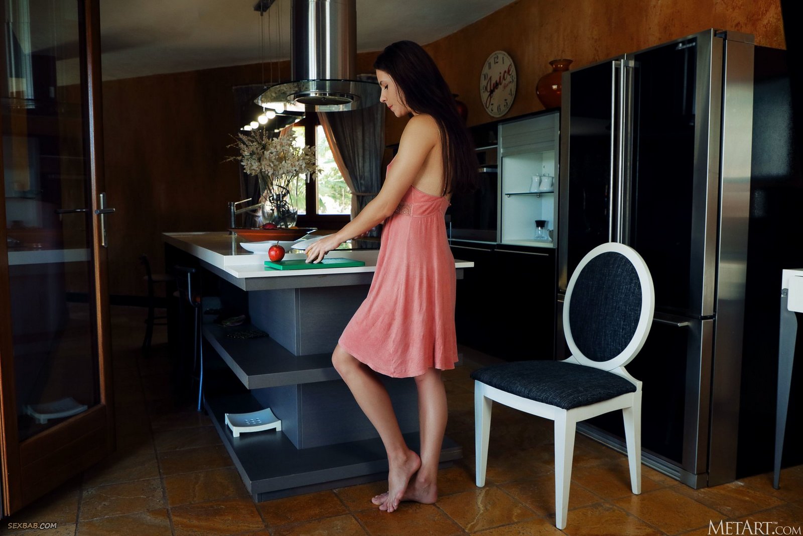 Сексуальная домохозяйка разделась на кухне