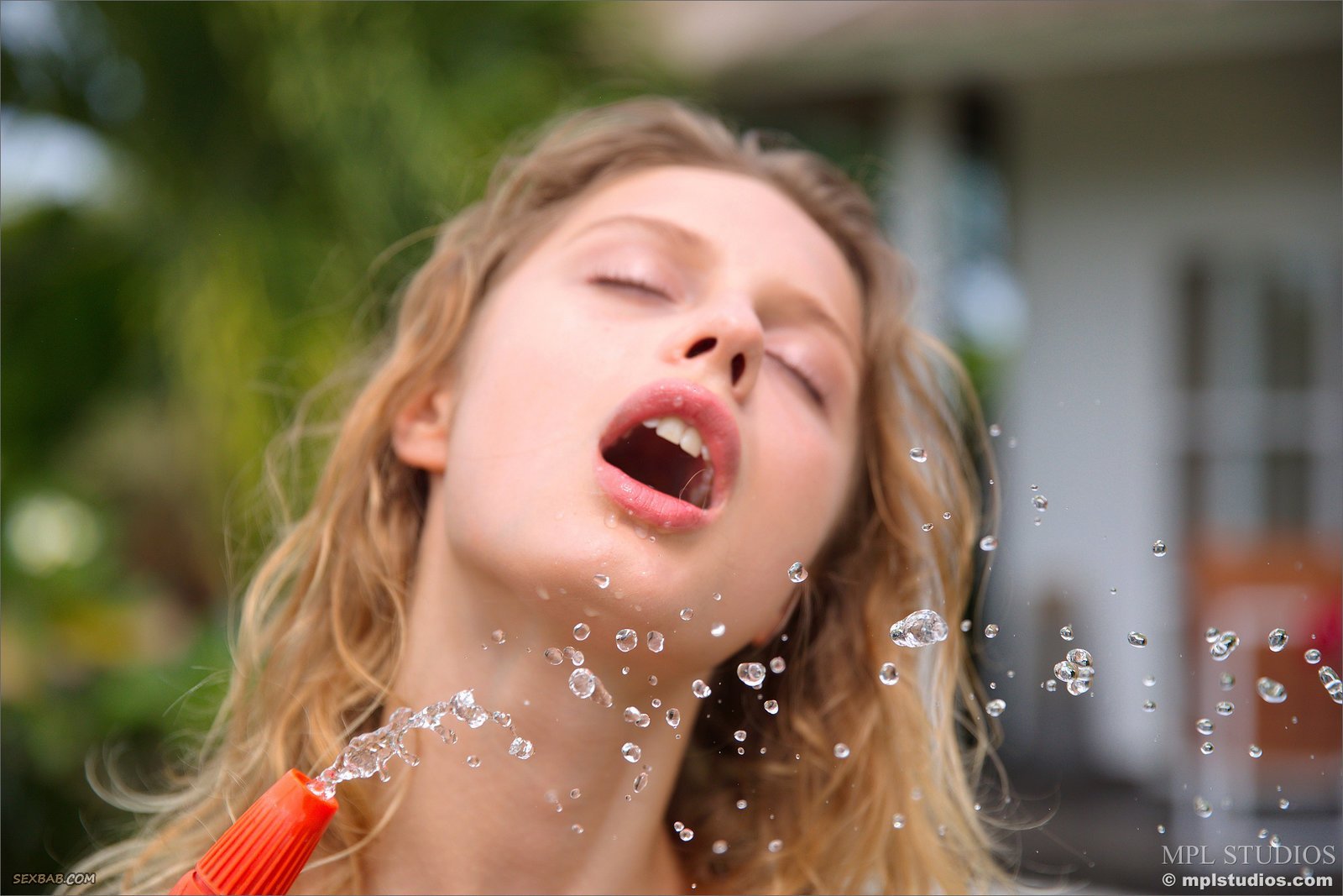 Описание: Очаровательная мокрая милашка игриво снимает с себя всю одежду и с удовольствием поливает себя прохладной водой из шланга, остужая свое горячее возбужденное тело. Голая блондинка с маленькими титьками страстно извивается всем телом перед камерой, чувственно показывая нам свою красивую упругую попку с сладкой киской.