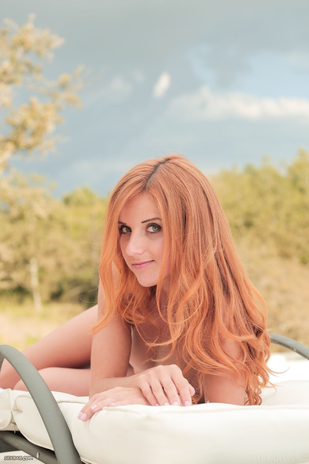 Описание: Наслаждаясь солнышком рядом с бассейном на шезлонге, рыжая молодая девушка с сексуальным телом принимается медленно снимать купальник. Оголившись, привлекательная девушка с упругими возбужденными сиськами подробно демонстрирует гладко выбритую голую писю, для этого раздвигая ножки лежа на боку.