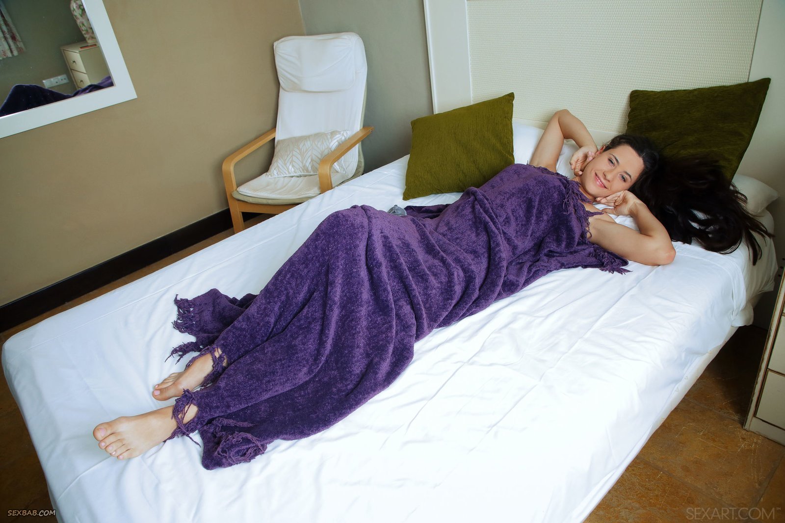 Описание: Только что проснувшись в мягкой постели, красивая брюнетка медленно мастурбирует с самого утра, чтобы хорошо начать свой день. Чувственная девушка возбужденно снимает с себя нижнее белье, освобождая упругие сиськи, и с силой быстро трахает себя длинными пальчиками свою текущую бритую киску.