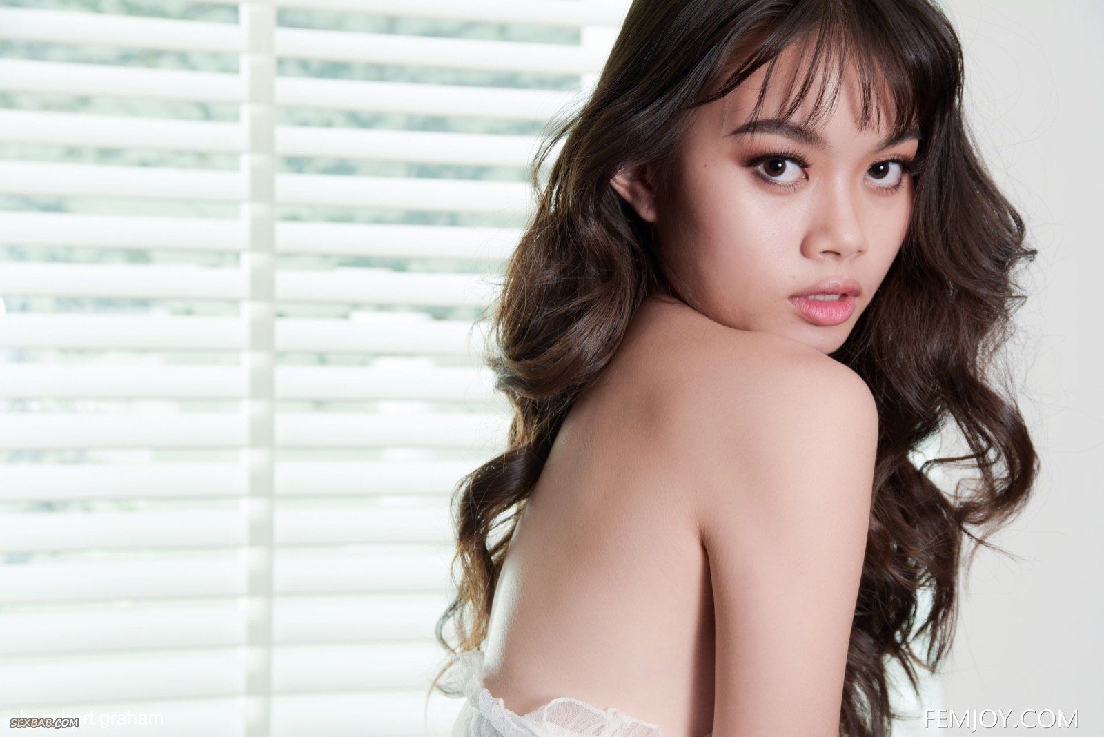Описание: Худощавая азиатская красотка с длинными вьющимися локонами игриво скидывает белоснежное платье с трусиками и светит гладенькую письку и лобком. В обнаженном виде сексуальная девушка с плоской грудью так же взбиралась на стол, где прогибаясь раком оттопыривала аккуратную упругую попку.