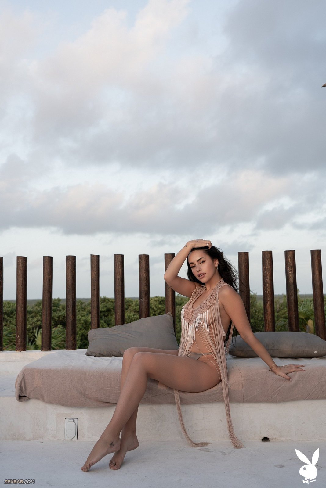 Описание: С наслаждением эротично прогуливаясь по крыше, сексуальная темноволосая модель с пухлыми губами в процессе оголяла натуральные сиськи с торчащими сосочками. Строя глазки и поглаживая голову руками, девушка в конечном итоге все же скинула и трусики, ложась на спину и немного показывая гладкий лобок.