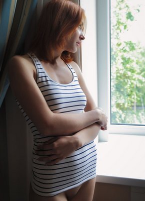 Описание: Раздевшись дома у окна, грудастая рыжуха в дальнейшем располагается на диване и показывает голое сексуальное тело, параллельно поглаживая себя руками. Наслаждаясь происходящим, сексуальная девушка охотно продемонстрировала натуральные сиськи, а затем раздвинула ножки лёжа на спине и позволила взглянуть на бритую киску.