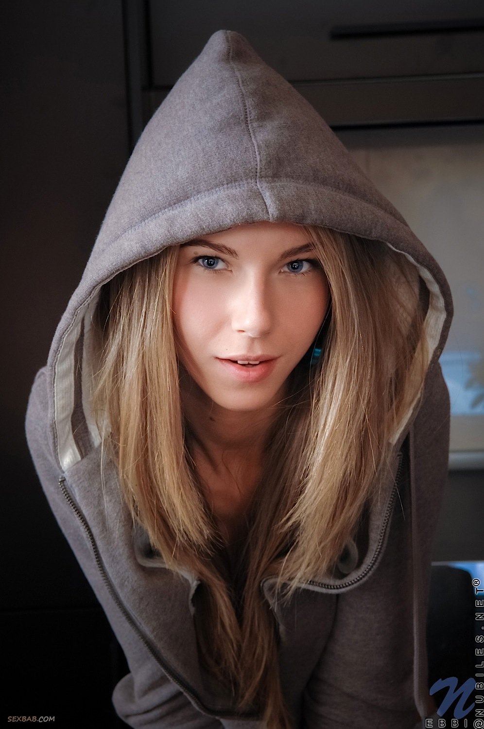 Описание: Светловолосая тощая девушка в толстовке с капюшоном на голое тело и без трусов эротично позирует и нежно ласкает пальцами бритую письку, особенно рьяно теребя свой клитор. Не скромничая перед фотографом и грациозно выгибаясь, красавица так же показывает натуральные титьки небольшого размера.