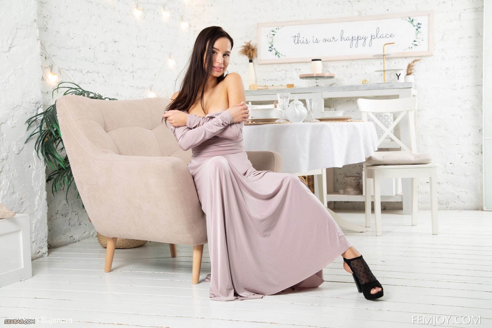 Описание: Медленно избавившись от шикарного длинного платья с трусиками, похотливая сучка выставила на показ перед камерой свое сексуальное подтянутое тело и эротично позирует голышом в кресле, выпячивая вперед бесстыже раскрытую промежность с бритой сладкой писькой между ног.