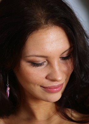 Описание: Обаятельная грудастая брюнетка с сексуальным телом эротично позирует перед нами и никуда не торопясь снимает с себя розовое нижнее бельё. Оставшись же совершенно голой, девушка с упругими натуральными сиськами забирается на комод, где поглаживая себя руками засвечивает бритую письку с гладким лобком.