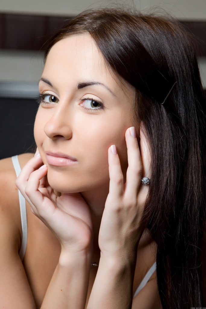 Посмотри, как заманчива эта девчушка. Как неприличен ее взгляд, как вызывающая поза. Ее молодое тело в белом сарафане скорее голое, чем одетое. Да и похоть заставляет Викторию все сбросить – вот она показывает свою кружевную писульку, заставляя тебя облизываться в предвкушении сладкого на десерт.