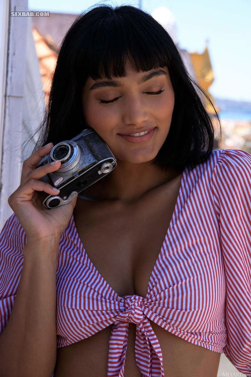 Темнокожая красотка обнажает свои сиськи и позирует голая на террасе (20 фото)